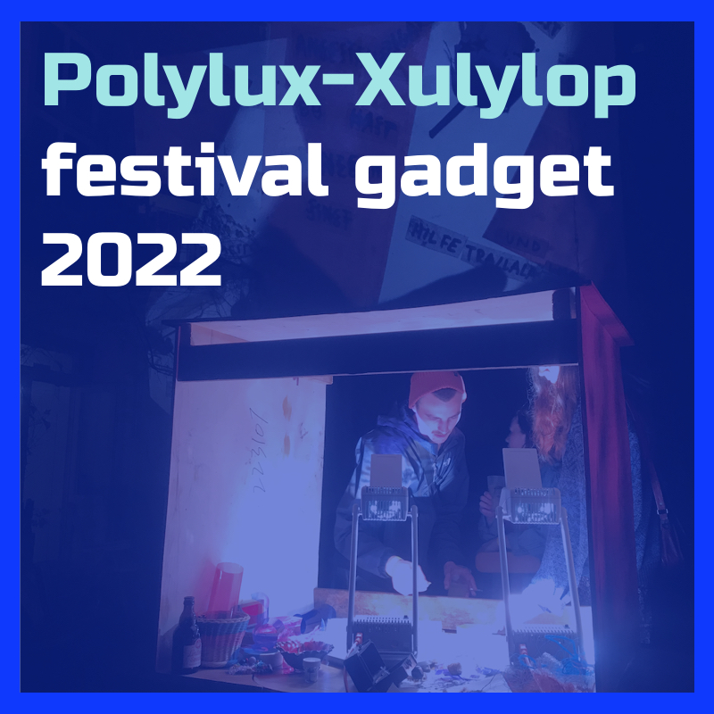 Polylux-Xulylop was developed in collaboration with Katja Rehor for fun, aesthetics and collective writing at „Folk and Fusion Festival“ Hildesheim. It consists of two projectors capable of lighting up a whole house facade, rain protection and a set of words, items and foil of different colours that people can use to alter the projection and write things. Polylux is open for booking by events in the region, for further details please get in touch!